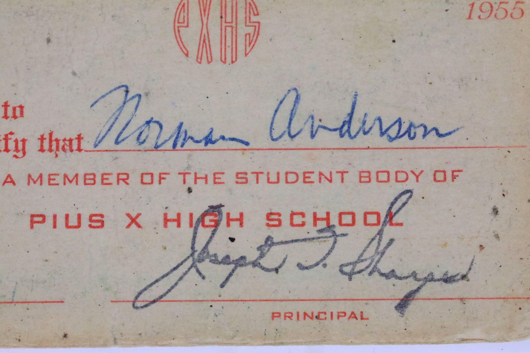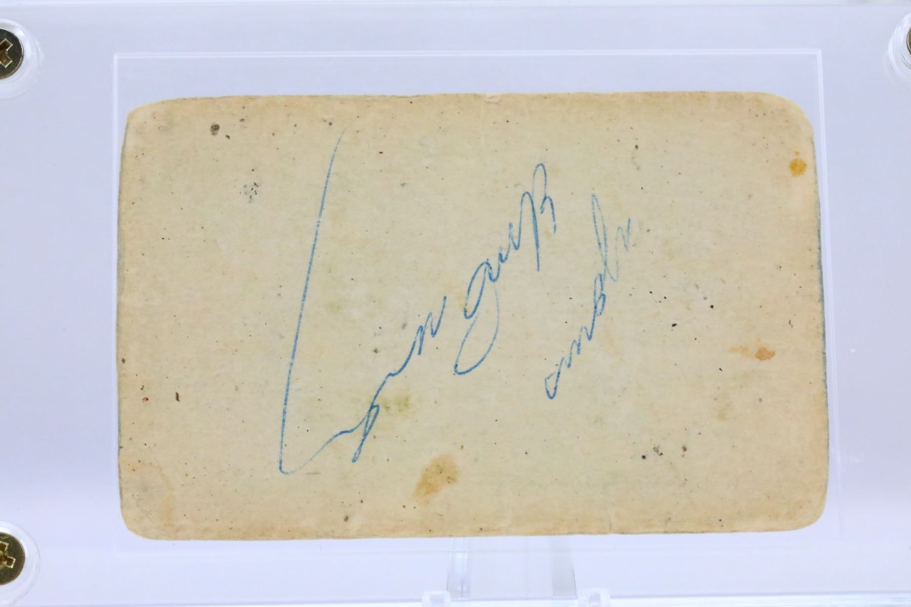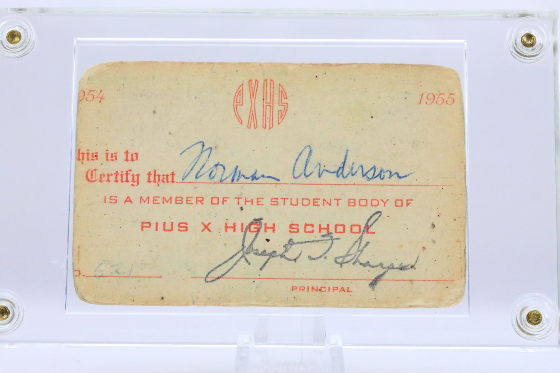 Elvis Presley Cut Signature in Plastic Capsule - This is an autograph signed by the "King of Rock n' Roll", Elvis Presley. The signature was signed on the back of a Pius X High School student body membership card, which is dated 1954-1955. Elvis signed "Yours Elvis Presley" on the back of the card. The autograph is contained in a protective plastic capsule, which measures approx. 3.25" x 5.25". Elvis Presley (1935-1977) was an American singer and actor. He was considered the most significant cultural icons of the 20th century, and is often referred to as "The King of Rock and Roll" or "the King". Presley is one of the best-selling solo artists in the history of recorded music, with estimated record sales of around 600 million units worldwide. He won three Grammys, the Grammy Lifetime Achievement Award, and has been inducted into multiple music halls of fame.