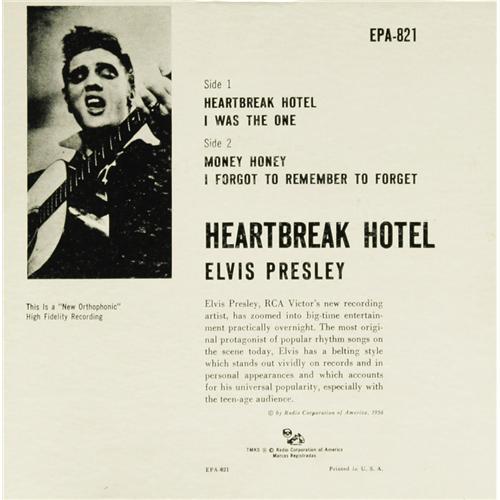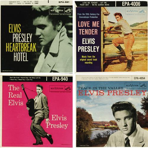 <B>Elvis Presley EP Group of 4 RCA (1956-57).</B></I> Enough variety in these four EPs to make the pickiest Elvis fan happy. Included are "Heartbreak Hotel" (821) in MT 9/ MT 9, "The Real Elvis" (940) in NM 8/ EX 7, "Love Me Tender" (4006) in NM 8/ NM 8, and "Peace In The Valley" (4054) in NM 8/ NM 8. <I>From the GRT Collection</B></I>