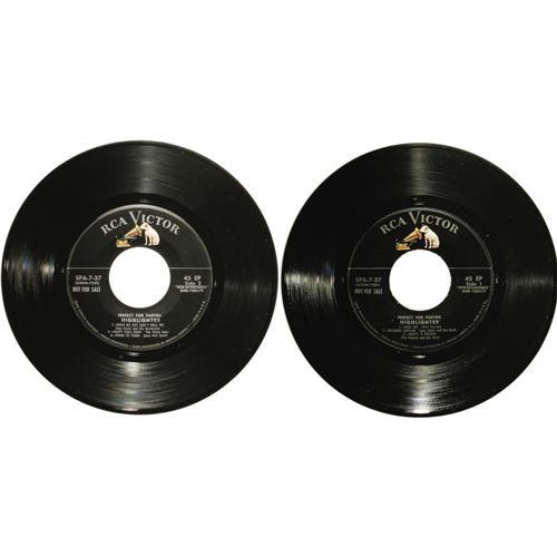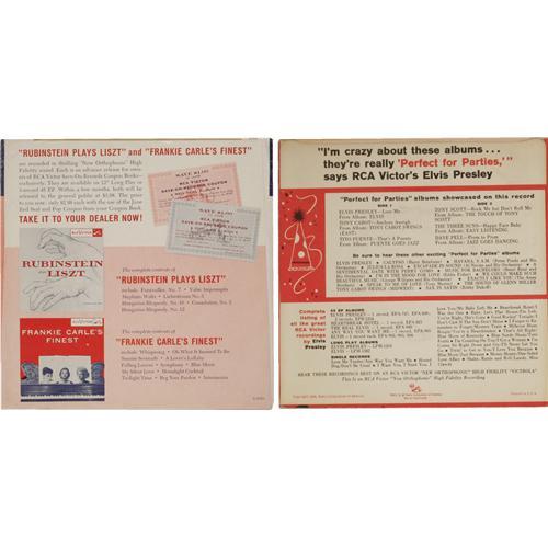 <B>Elvis Presley EP Sampler Group of 2 (RCA, 1956).</B></I> Hard to find, especially in this grade, two samplers: "Save-On Record" (RCA 7-27, 1956) with silver lines on label in EX 7/ EX 7; plus "Perfect For Parties" (RCA 7-37, 1956) in EX 7/ EX 7.<BR><BR><b>Shipping:</b> Recordings (<a target="_blank" href="http://www.heritageauctions.com/common/shipping.php">view shipping information</a>)