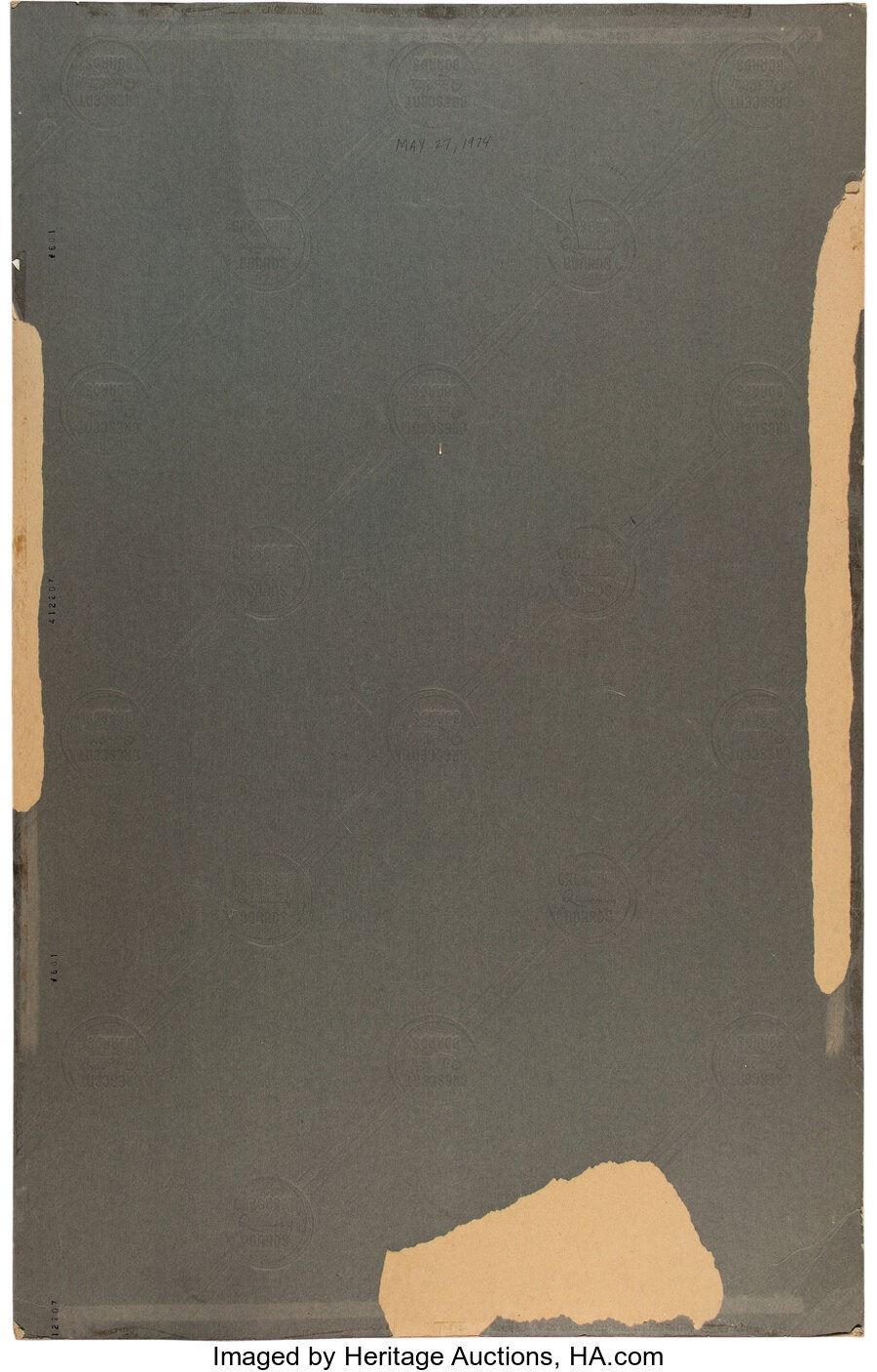 Heritage Auctions strongly encourages in-person inspection of lots by the Bidder. While Heritage is not obligated to provide a condition report of each lot, Bidders may feel free to contact the department for a Condition Report, and Heritage will attempt to furnish one, but shall not be liable for failing to do so. Condition is often detailed online, but is not included in our catalogues. The Bidder should review online descriptions, as the descriptions supersede catalog descriptions and any condition reports otherwise provided. Heritage condition statements whether appearing in the catalog, online, or at a person?s request are based on a visual inspection and are for guidance only and should not be relied upon as statements of fact, and do not constitute a representation, warranty, or assumption of liability by Heritage. Please note that we do not de-frame lots estimated at $1,000 or less and may not be able to provide additional details for lots valued under $500. All lots offered regardless of a condition report are sold ?AS IS?.