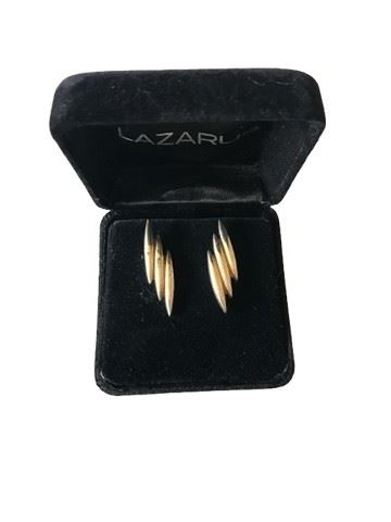 Elvis Presley personal gold plated lightning bolt cufflinks in a Lazarus branded box. Elvis was known for his flamboyant style and often wore unique and eye-catching jewelry.