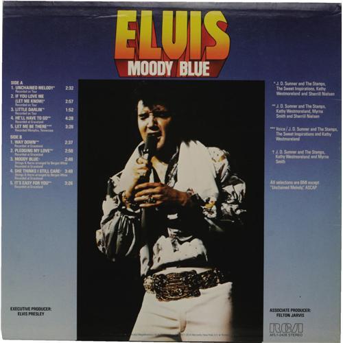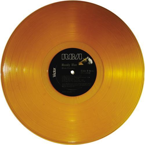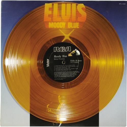 <B>Elvis Presley "Moody Blue" Gold Vinyl LP RCA AFL 1-2428 Stereo (1977).</B></I> Released the year Elvis died, any color version other than the black and the blue was produced in very limited numbers, and intended for RCA in-house use only. This one could go to <I>your</B></I> house! Condition: NM 8/ NM 8. <I>From the GRT Collection</B></I>.<BR><BR><b>Shipping:</b> Recording (<a target="_blank" href="http://www.heritageauctions.com/common/shipping.php">view shipping information</a>)