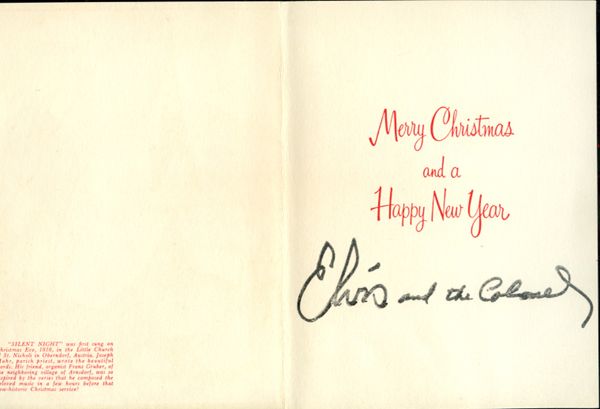 Elvis Presley original Christmas card circa 1950's-1960's with printed Elvis and Colonel Tom Parker signatures instead. The item comes with a certificate of authenticity from Graceland. None better than this!