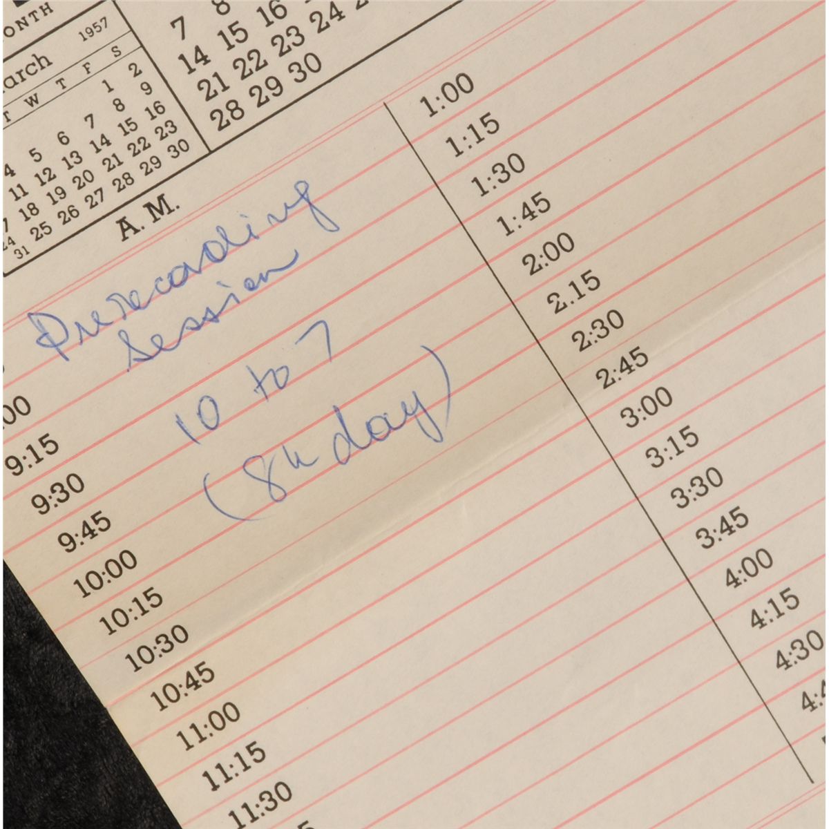 Elvis Presley: page from his Personal Secretary's Desk Calendar with 'Jailhouse Rock' notes, 30th April 1957