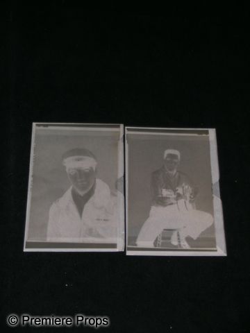From the Lester Glassner Collection. This is a lot of (2) photographic negatives of the King of Rock & Roll himself, Elvis Presley . The negatives feature Elvis sitting on a small stool, guitar in hand, playfully pointed at the camera, and a medium close up of Elvis in costume as pilot Mike Edwards in the 1963 musical-comedy 'It Happened at the World's Fair.' Lester Glassner was a collector of Pop culture artifacts whose collection included movie posters, lobby cards, toys, and more than 250,000 movie stills. (measures approx. 7 1/2" x 5" each)