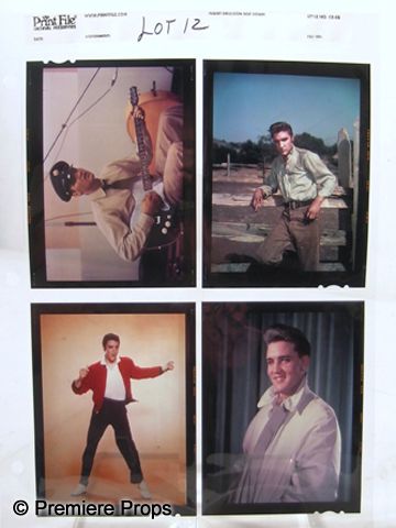 An amazing collection of photographic ephemera from the King of Rock n' Roll himself, Elvis Presley. With the 35th Anniversary of his passing recently commemorated, this is a wonderful lot of slides, negatives and transparencies chronicling the career of one of the greatest entertainers in history. Formerly on display in the Mississippi Music Hall of Fame, most of these images have never been seen, much less made available to the public before, and Premiere Props is proud to be able to offer these incredible, historical lots. This is a lot of (4) large size color transparencies featuring candid images of Elvis. The images include Elvis in a military uniform, playing an acoustic guitar; Elvis leaning against a wooden fence, likely between takes on a film set; Elvis performing a heart-melting hip-swivel move; and Elvis in a white jacket with trademark pompadour haircut. Simply amazing that these have been unseen by the public for all these years. Until now....(measures approx. 4"x 5" ea.)