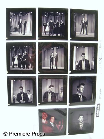 An amazing collection of photographic ephemera from the King of Rock n' Roll himself, Elvis Presley. With the 35th Anniversary of his passing recently commemorated, this is a wonderful lot of slides, negatives and transparencies chronicling the career of one of the greatest entertainers in history. Formerly on display in the Mississippi Music Hall of Fame, most of these images have never been seen, much less made available to the public before, and Premiere Props is proud to be able to offer these incredible, historical lots. This is a lot of (11) large size b&w and color slides of candid images of Elvis. There are 10 b&w slides featuring images from an early television taping at ABC, two of which have him wearing his military uniform, and one color slide of Elvis with a look of surprise on his face. Simply amazing that these have been unseen by the public for all these years. Until now....(slides measure approx. 2 3/4"x 2 3/4" ea.)
