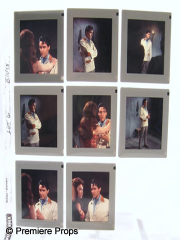 An amazing collection of photographic ephemera from the King of Rock n' Roll himself, Elvis Presley. With the 35th Anniversary of his passing recently commemorated, this is a wonderful lot of slides, negatives and transparencies chronicling the career of one of the greatest entertainers in history. Formerly on display in the Mississippi Music Hall of Fame, most of these images have never been seen, much less made available to the public before, and Premiere Props is proud to be able to offer these incredible, historical lots. This is a lot of (8) large size, color slides of behind-the-scenes images of Elvis and an actress from one of his early films. Simply amazing that these have been unseen by the public for all these years. Until now...(slides measure approx. 2 3/4"x 2 3/4" ea.)