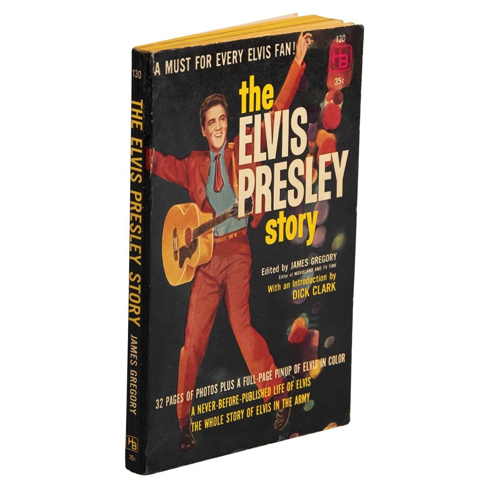 Signed book: The Elvis Presley Story. NY: Hillman Books, 1960. Paperback, 4.25 x 6.25, 160 pages. Signed and inscribed on the inside front cover in blue ballpoint, "To Russ, Elvis Presley." In fine condition, with a faint stain above the signature.
