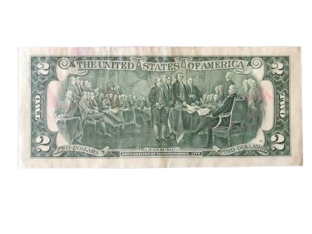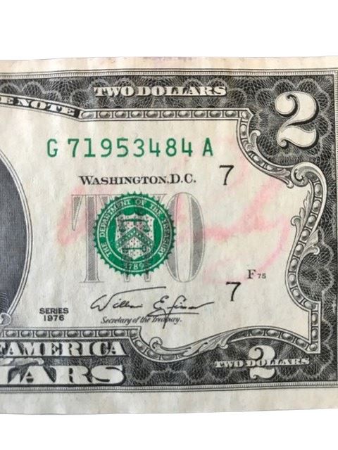 A 1976 Two-Dollar US bill signed by Elvis Presley, part of a private joke to his inside circle, including fellow musician Charlie Hodge. The faded pink marker inscriptions from Elvis read “Merry Christmas” and “Elvis Presley”. Elvis, who was famous for his immense generosity including showering his staff and helpers, and even brand new acquaintances, with valuable gifts up to brand new automobiles, presented his “Memphis Mafia” with crisp and signed two-dollar bills for Christmas in 1976, before giving them more sincere gifts. Elvis found the prank hilarious when his friends were astonished to not (at first) receive gifts worth thousands of dollars for each of them. Sadly, this was to be Elvis’s final Christmas celebration as he passed away the following August. This bill was given to Charlie Hodge on that Christmas. Hodge worked for Presley from 1960 until Presley’s death in 1977, as a member of his “Memphis Mafia”. Hodge was the sole professional musician and entertainer in the group, a background vocalist and rhythm guitarist for Presley, and often handed him water and scarves to use on stage.