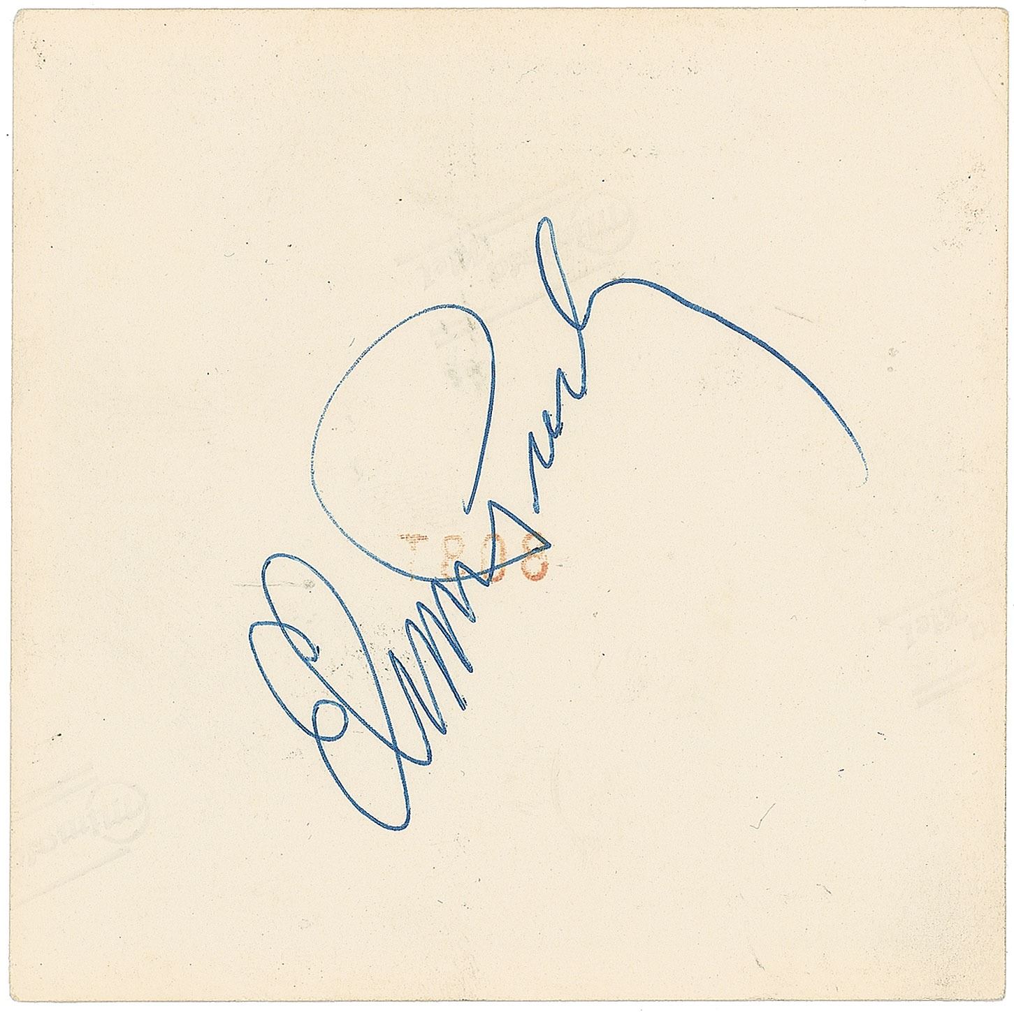 All lots sold by RR Auction are accompanied by an Auction Certificate (“AC”). On any lot presented with an AC issued by RR Auction, the certification is only as to its attribution to the person or entity described or to the lot’s usage and only as explicitly stated therein (the “Certification of Authenticity”), to the exclusion of any other warranties, express or implied, including but not limited to those pursuant to the Uniform Commercial Code. The Certification of Authenticity inures only to the original Bidder (as shown in RR Auction’s records). Bidder may not transfer, assign, or otherwise convey the Certification of Authenticity, and such purported transfer, assignment, or conveyance shall be null and void. The Certification of Authenticity is valid from date of the Auction in which Bidder was awarded the lot (the “Auction Date”) until five (5) years after the Auction Date, without exception.