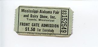 Elvis Presley unused ticket to the Mississippis-Alabama Fair. This item comes with a certificate of authenticity guaranteed for the life of the piece.