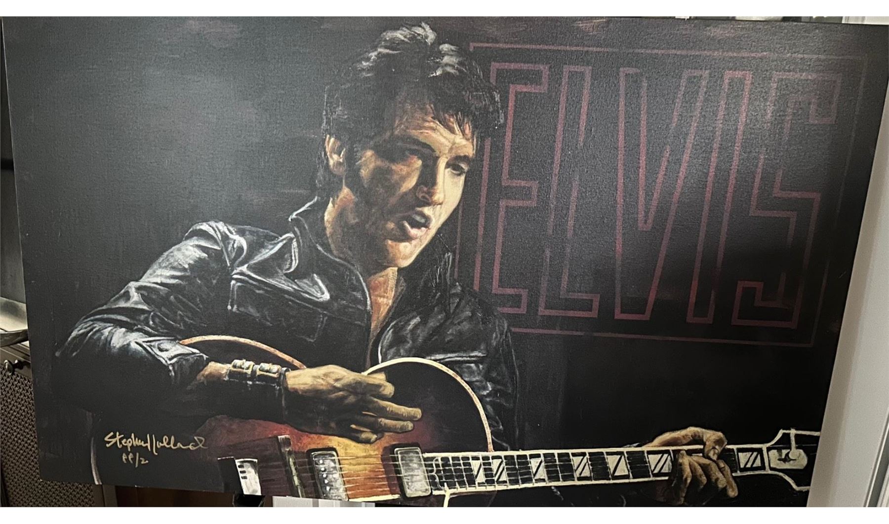 Elvis Presley 25.5" x 42" Giclee PP2, by Stephen Holland on boxed canvas. Was exhibited so some slight wear on edges. w/COA