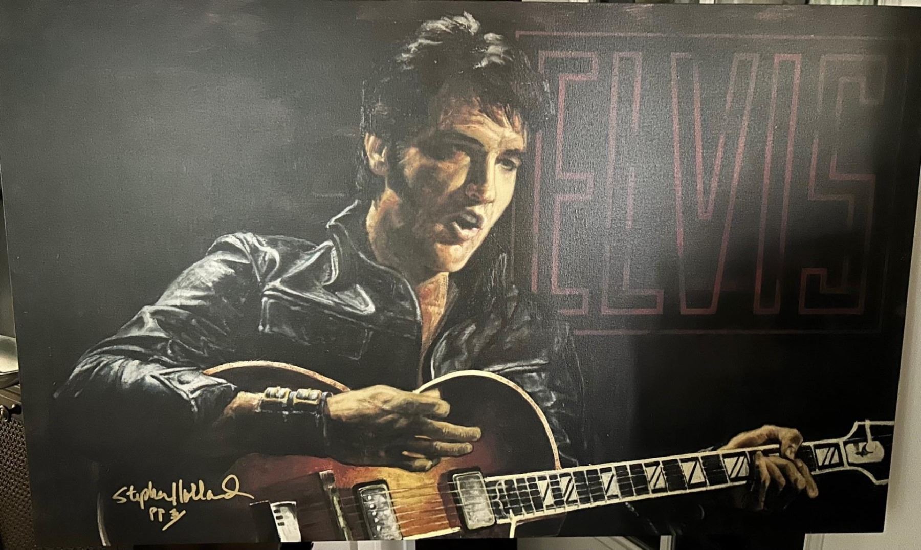 Elvis Presley 25.5" x 42" Giclee PP3, by Stephen Holland , on boxed canvas. Was exhibited so some slight wear on edges. w/COA