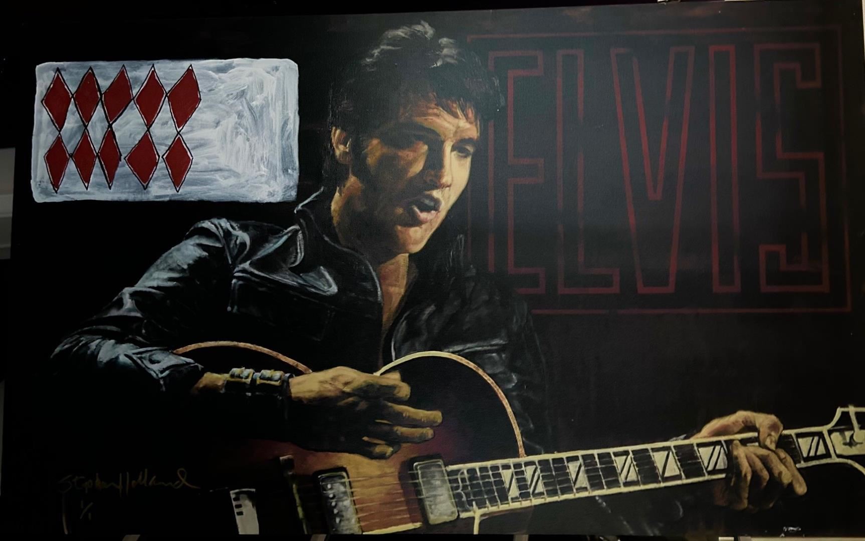 Stephen Holland's Elvis Presley is a 1/1 "Unique" 25.5" x 42" Giclee, acrylic & ink on boxed stretchers