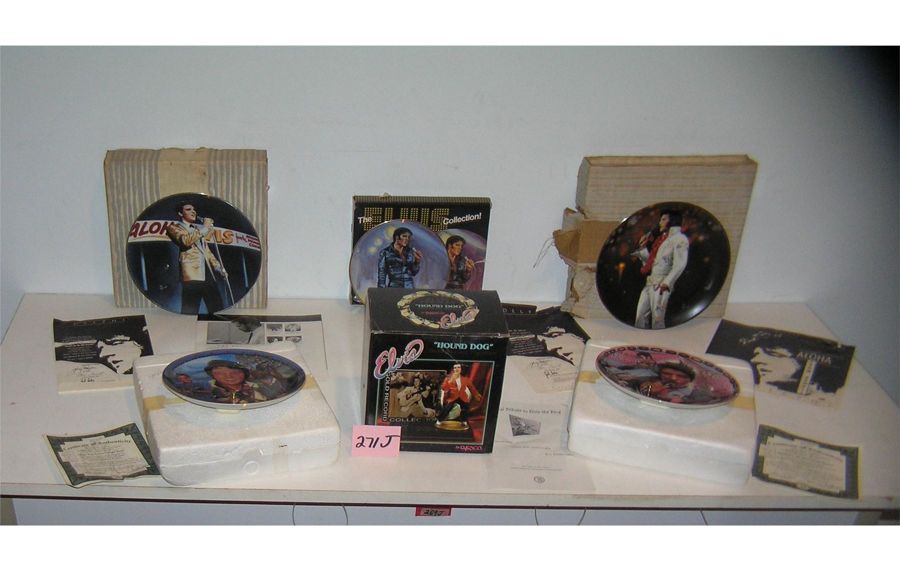 Collection of vintage Elvis Presley collector plates and Hound Dog figurine est. value $200.00-$250.00