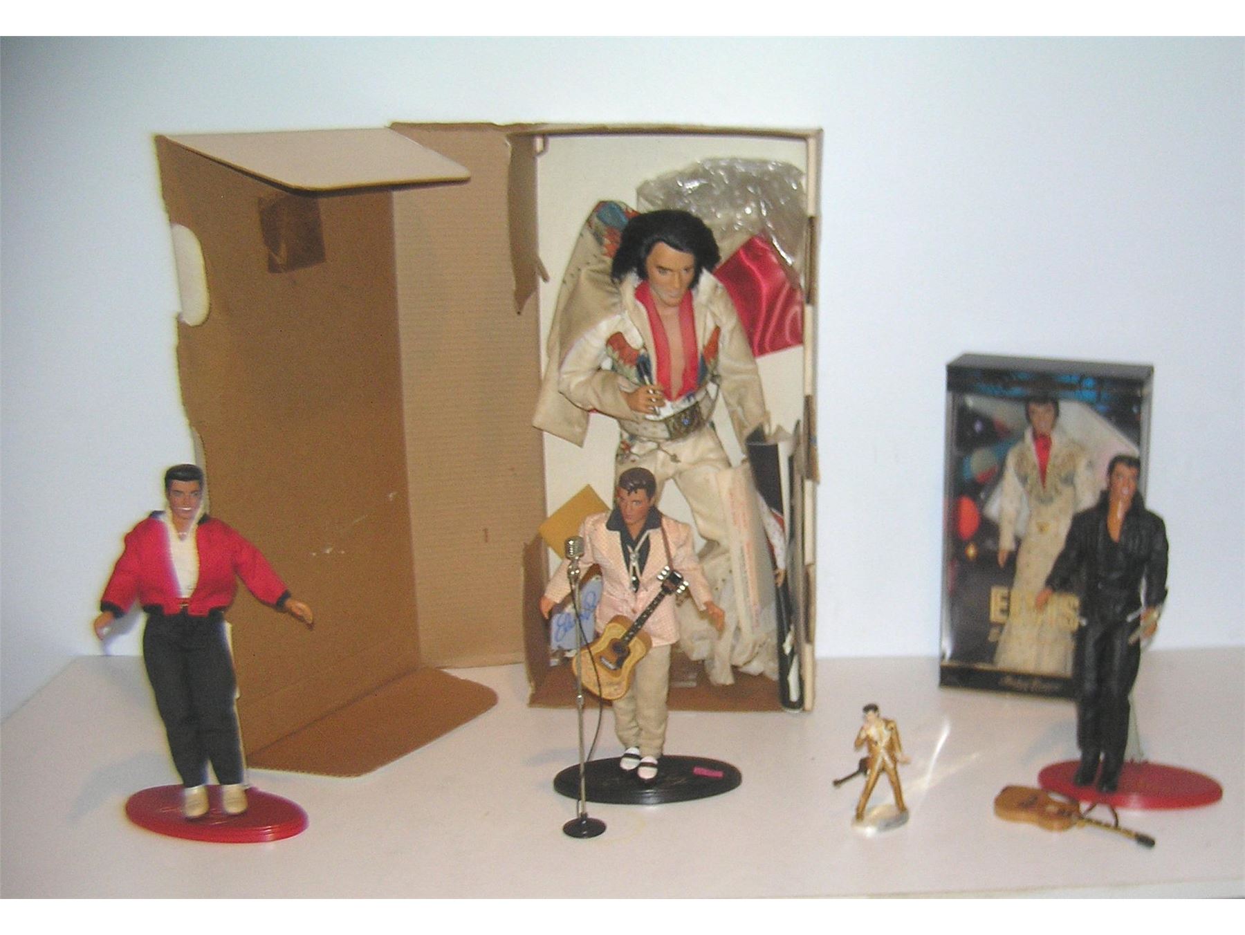 Elvis Presley doll and figurine collection 6 pieces total, 2 with original boxes est. value $300.00-$350.00