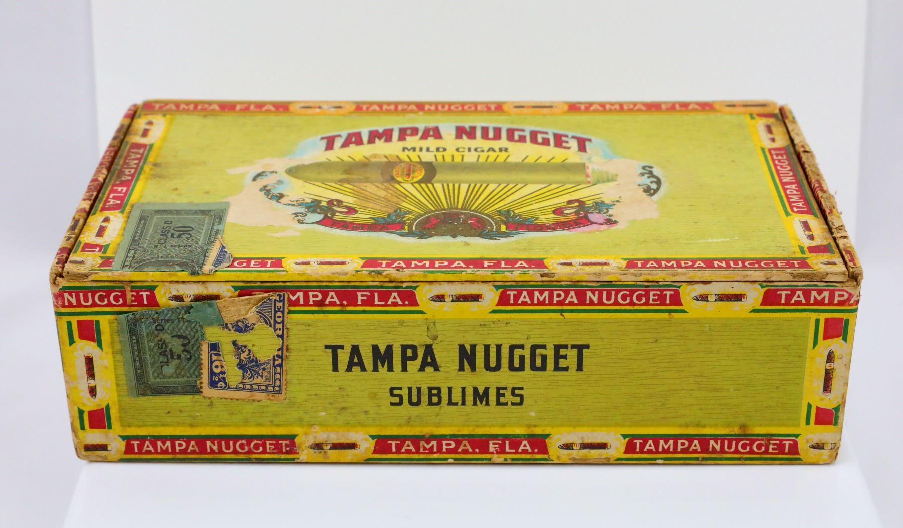 Elvis Presley's Personally Owned 1960s Tampa Nugget Cigar Box W/Certificate of Authenticity - This 1960s era Tampa Nugget Mild Cigar Box was in the possession of Elvis Presley, who was a known casual cigar aficionado. The box was used by Elvis in one of his owned/gifted automobiles that was later purchased and exhibited by Mike Moon of the Elvis Presley Museums. The box will be accompanied by a certificate of authenticity from Stephen Shutts, a well known collector who had a CMT reality TV series based on his life collection Rock N' Roll memorabilia. The box measures approx. 9.25"L x 5.25"W x 2.5"H. Elvis Presley (1935-1977) was an American singer and actor. He was considered the most significant cultural icons of the 20th century, and is often referred to as "The King of Rock and Roll" or "the King". Presley is one of the best-selling solo artists in the history of recorded music, with estimated record sales of around 600 million units worldwide. He won three Grammys, the Grammy Lifetime Achievement Award, and has been inducted into multiple music halls of fame.