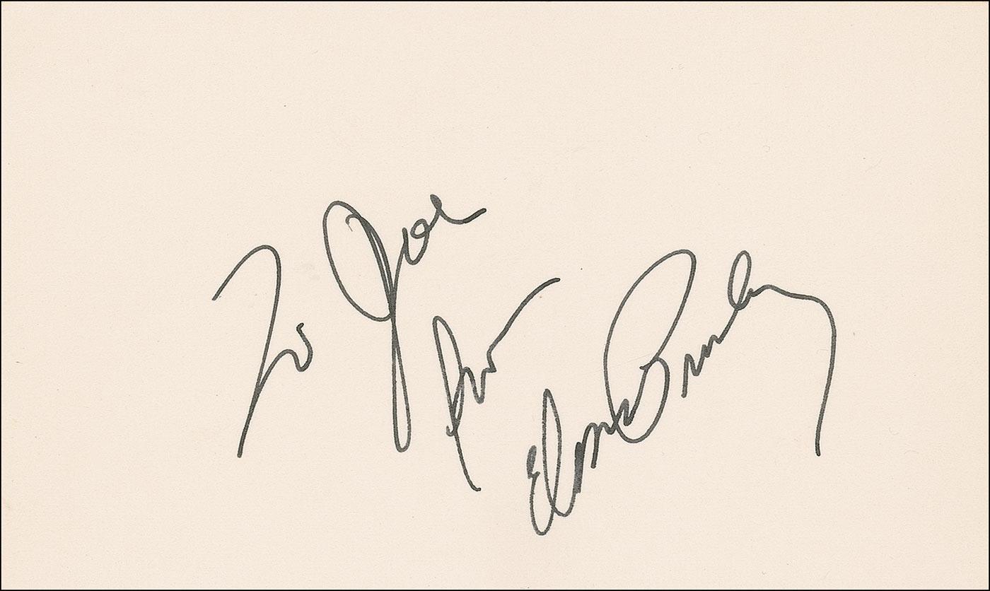 Vintage ink in-person signature and inscription, “To Joe from Elvis Presley,” on an off-white 5 x 3 card. In very fine condition. An exceptionally well-penned and clean example.