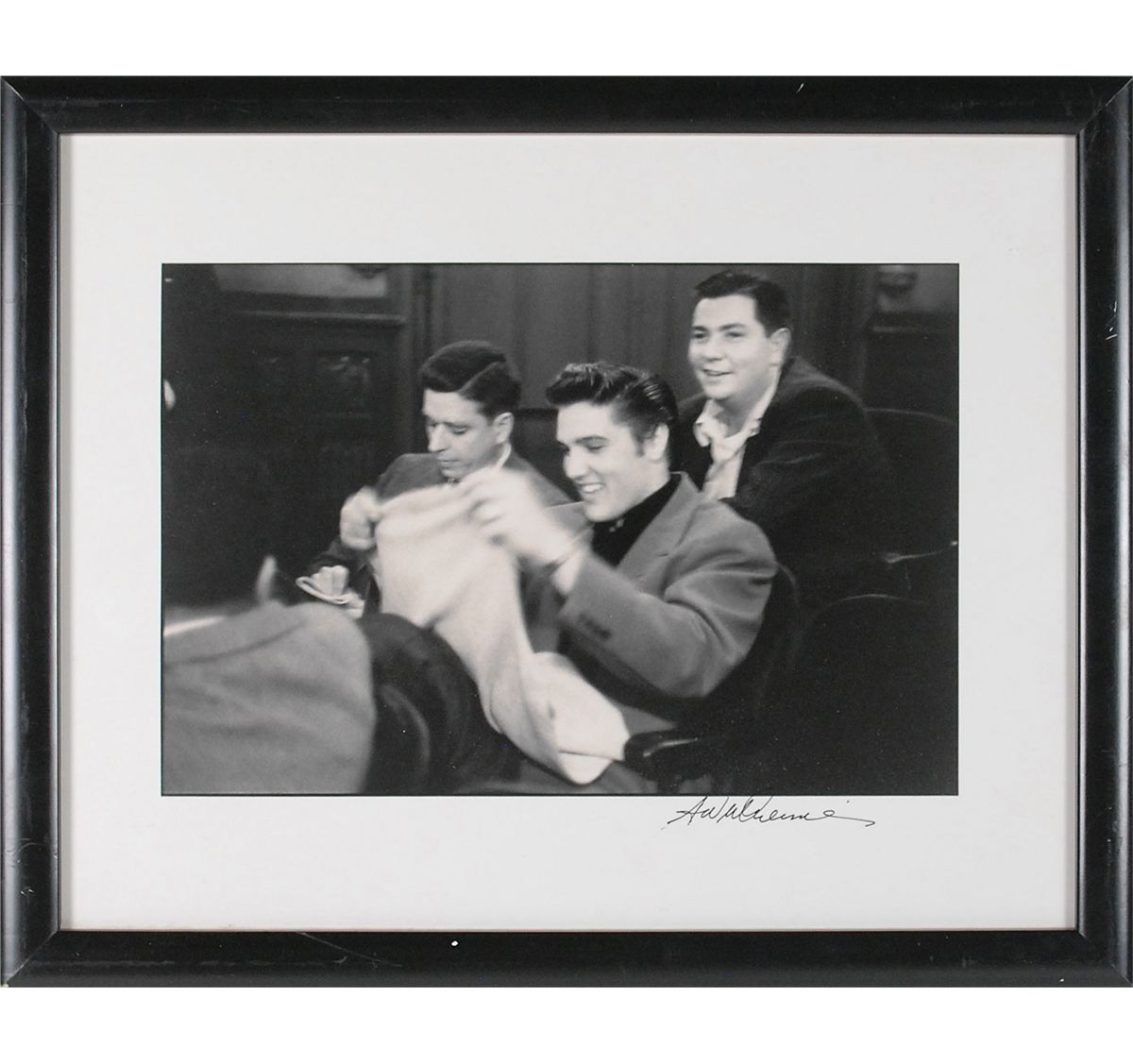 Very nice 13.5 x 10.5 photo of Elvis with Bernie Brillstein signed in the lower border in black ink by the photographer. Framed to an overall size of 15.25 x 12.5. In fine condition. Provenance: Gerry Harrington.