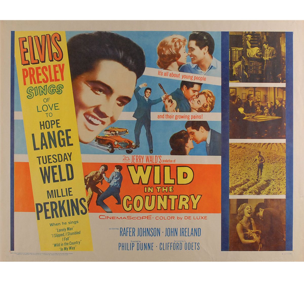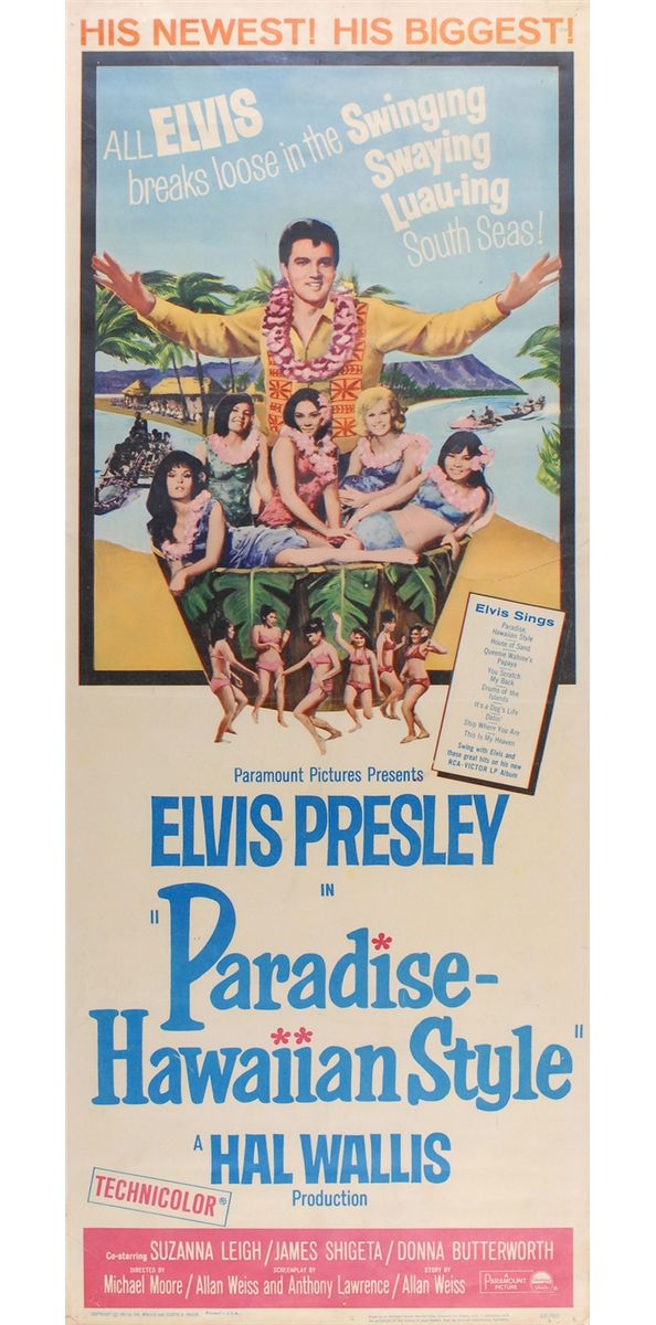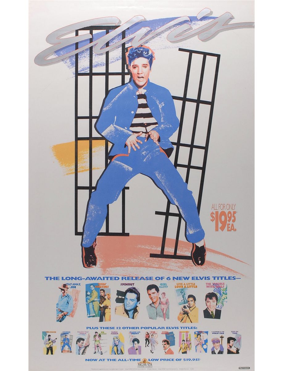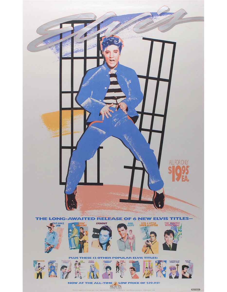Collection of 14 posters of various sizes, ranging from window cards to one-sheets, most related either to Presley’s films or later album releases. Vintage posters are for: Clambake; Flaming Star; Frankie and Johnny; From Elvis Presley Boulevard, Memphis, Tennessee (2); Girl Happy; Moody Blue; Paradise, Hawaiian Style; and Wild in the Country (2). Modern posters include two generic Elvis posters and two advertising MGM home video releases of his films. In overall very good to fine condition.