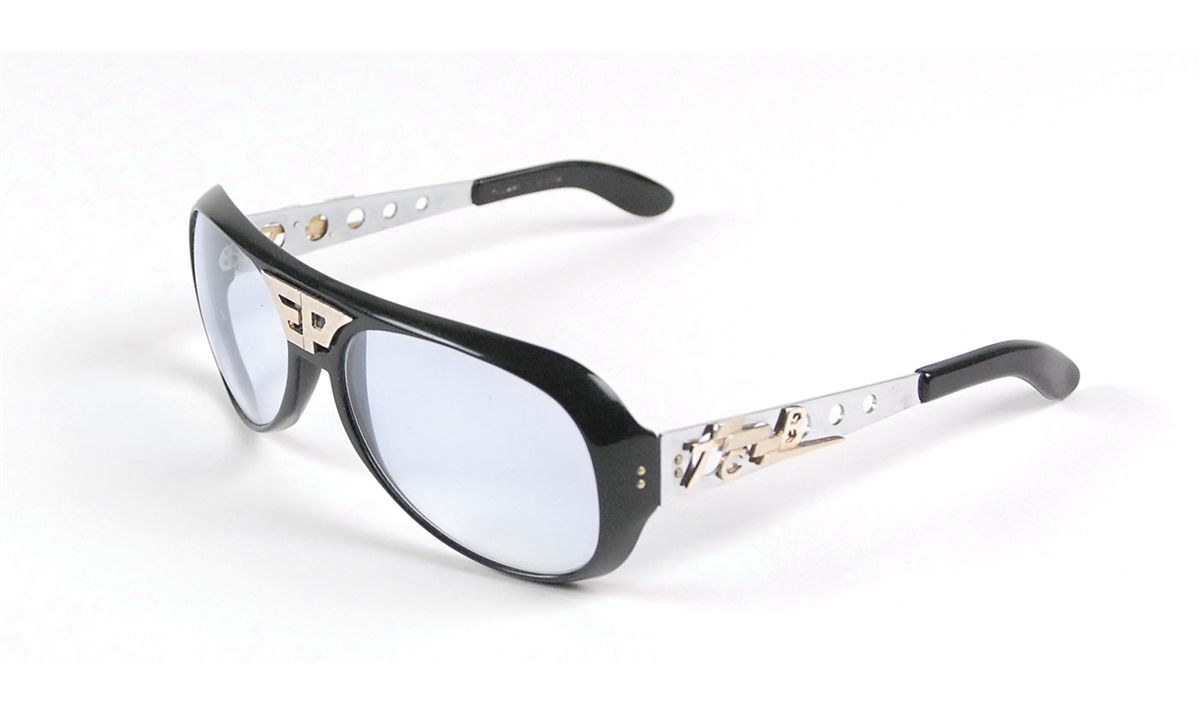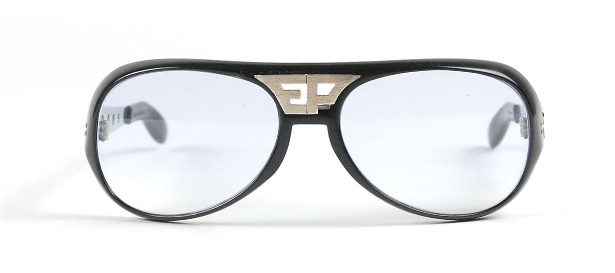 Elvis Presley’s personally-owned and -worn custom glasses with nonprescription lenses. The aviator-style glasses feature black plastic frames with his initials, “EP,” prominently set in the bridge and the famous lighting bolt “TCB” emblems on the temples, representing his ‘Taking Care of Business’ band. The black plastic earpieces are impressed with “Polaroid 8804” and “Holland.” In fine condition, with light general wear. Accompanied by a letter of provenance from Elvis Presley’s bodyguard Dave Hebler. In part: “One day (1975), Elvis, Linda and I went from Memphis to Dallas to look at the restoration progress on Elvis’ latest airplane—‘The Lisa Marie’…I asked him why he wasn’t wearing the chrome aviators and he said he needed a change of pace. I told him I thought so too and with that he tossed them at me and said, ‘I needed the change of pace’…The sunglasses…are the custom pair of black aviator sunglasses that I received from Elvis on that day.” Also accompanied by a letter of provenance from The EP Archives, stating: “I have seen both chrome and gold sunglasses but this is the only pair of black ones known to exist.” An exceptional piece of pop cultural history embodying Elvis’s iconic look.