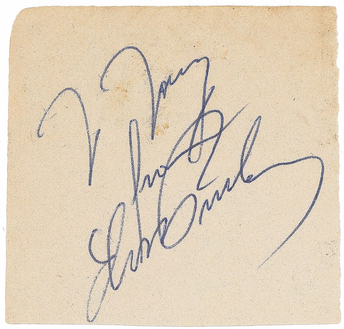 Vintage ballpoint signature and inscription, “To Tony, from Elvis Presley,” on an off-white 2.5 x 2.25 slip. In fine condition, with light soiling.