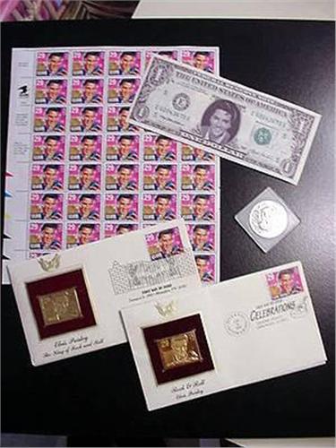 Elvis Tribute (Died 8-16-77), Stamp Sheet, (2) F.D Covers, Silver Round & Elvis $