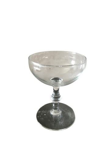 A champagne glass from Elvis and Priscilla Presley's wedding. The wedding ceremony was followed by an elaborate breakfast banquet, held just below the hotel’s casino, including Southern fried chicken, Oysters Rockefeller, roast suckling pig, eggs minnette, lobster, champagne and more. Red Foxx was the sole person of color and the sole entertainer besides Elvis who was invited. He treasured this event and also kept a water glass and a wine glass in addition to this champagne glass from the gala meal.