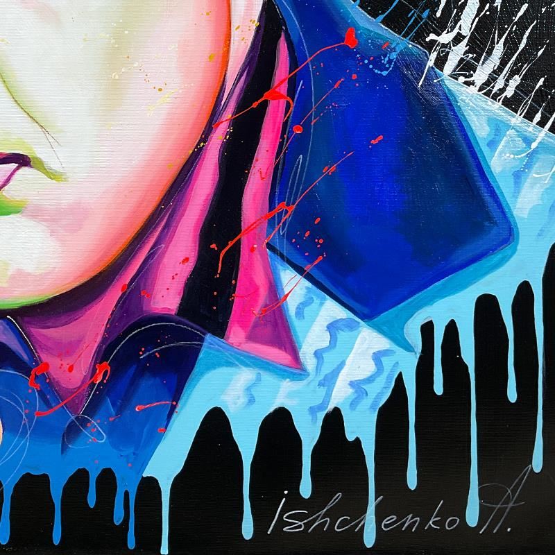 "Elvis" is an original acrylic painting on canvas by Alexander Ishchenko, hand signed by the artist. Includes Letter of Authenticity. Measures approx. 36" x 36" (image).