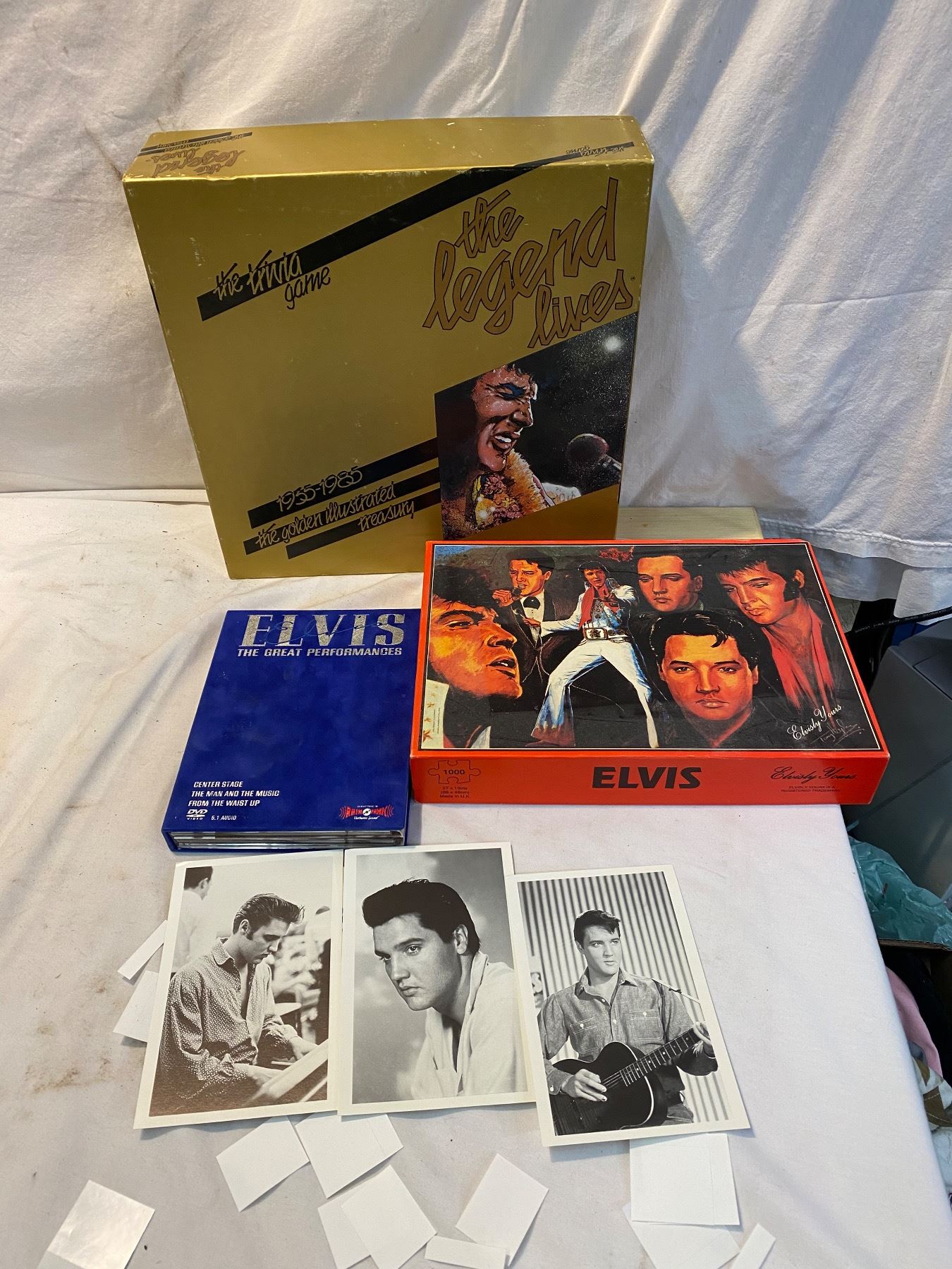 Elvis dvds, puzzle and game, postcards
