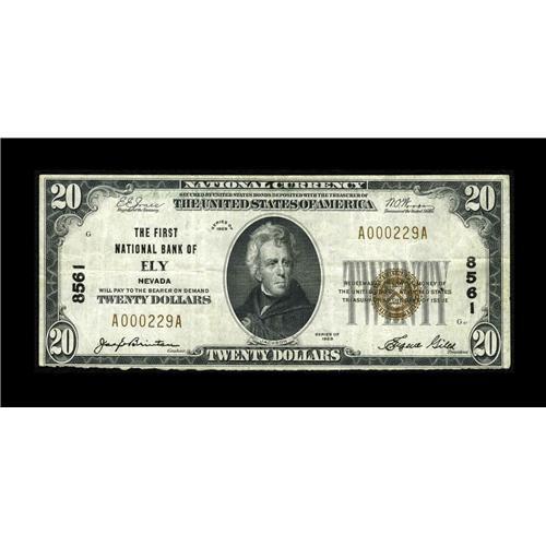 Ely, NV - $20 1929 Ty. 1 The First NB Ch. # 8561Here is