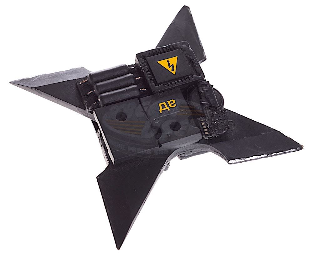 (TriStar Pictures, 2013) This prop light-up throwing star was custom-made by the production for use by Sharlto Copley as "Kruger". The prop star is made of hard plastic with applied parts and a micro switch that activates the star's tiny lights. The star measures 2.75" x 2.75" x 0.5".