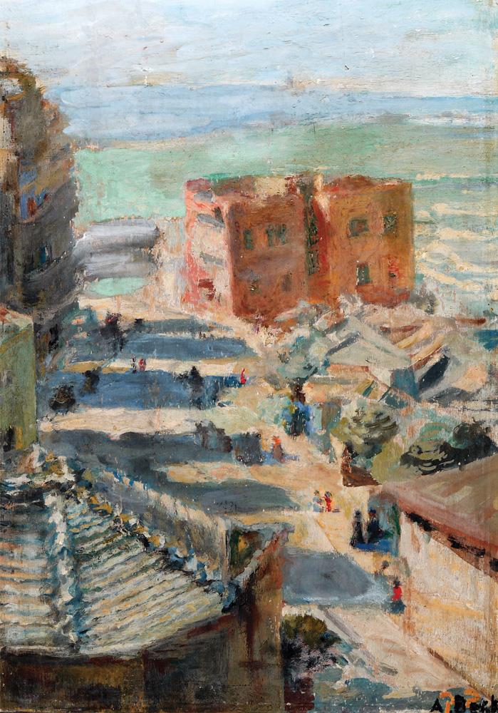 Elza Beck, Israeli Art, 1884 - 1974, The Red House on the Yarkon Street in Tel Aviv, Oil on wood, 40x28cm, Signed., , , , ,