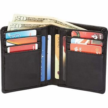 Embassy Men's Solid Genuine Lambskin Leather Bi-Fold Wa **|**|** Features genuine leather exterior, divided space for currency, and 10 slots for cards. A wider design makes this wallet thinner, so it fits easily into your front or back pocket. Measures 4-7/8" x 3-7/8" x 1/2".
