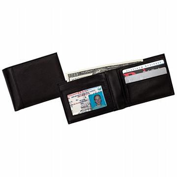 Embassy Men's Solid Genuine Leather Bi-Fold Wallet **|**|** Features genuine leather exterior and faux leather interior. Fits easily into your front or back pocket. Space for credit cards, license and bills. Measures 4-3/8" x 3-3/8" x 1/2"