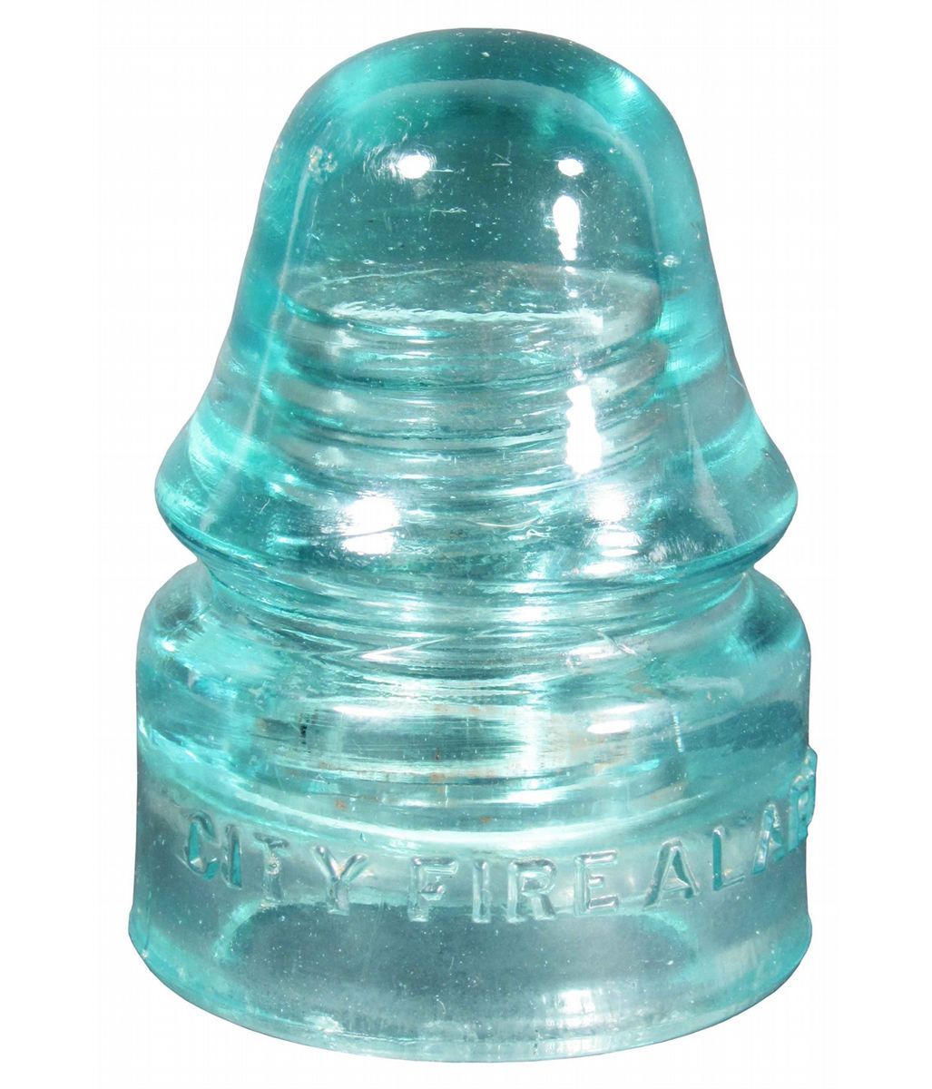 Embossed City Fire Department Glass Insulator. Bottom lip and interior chips. 4 inches tall.