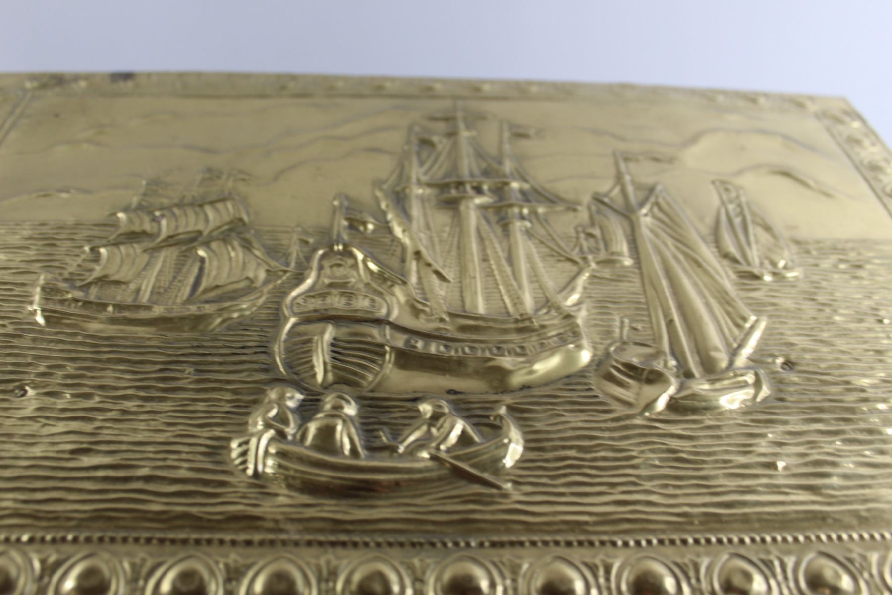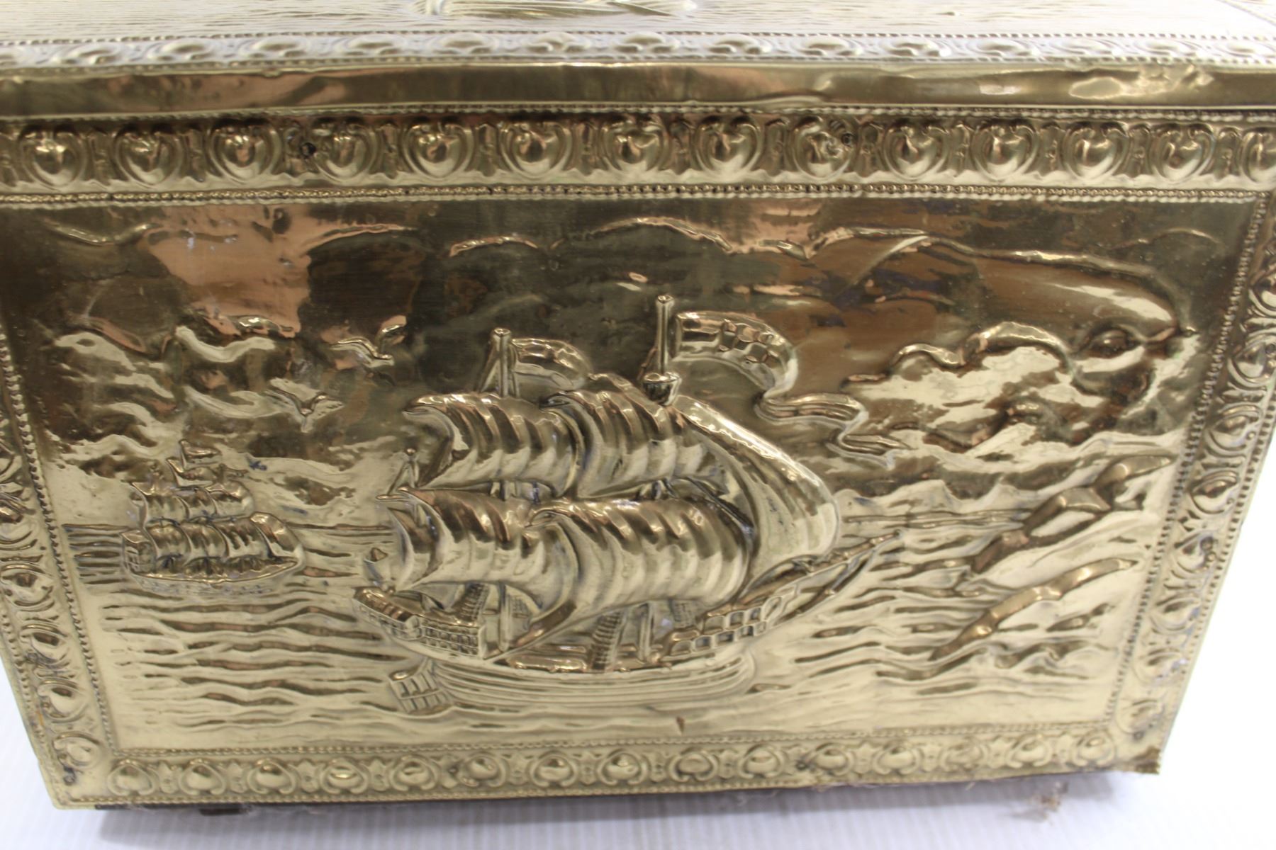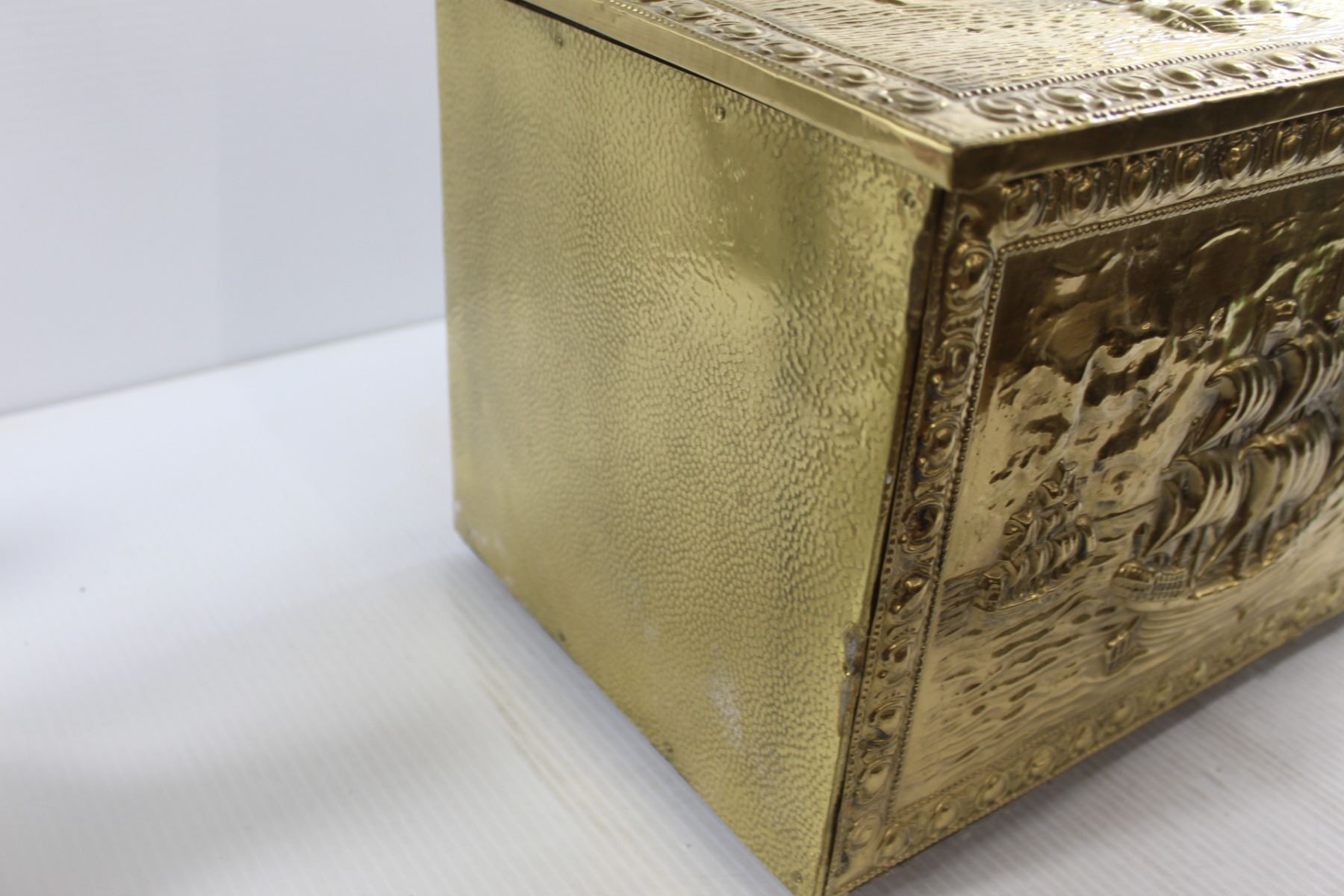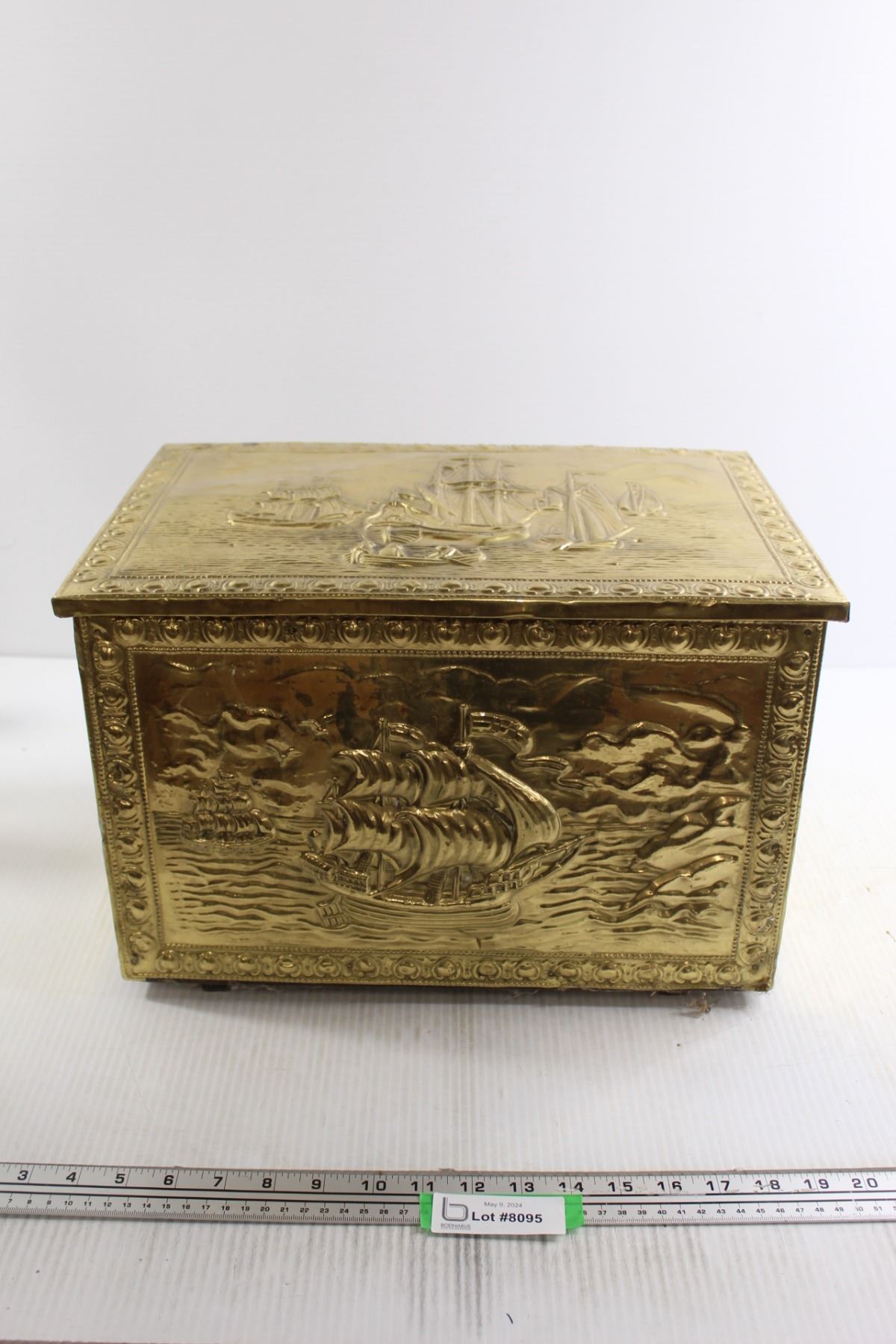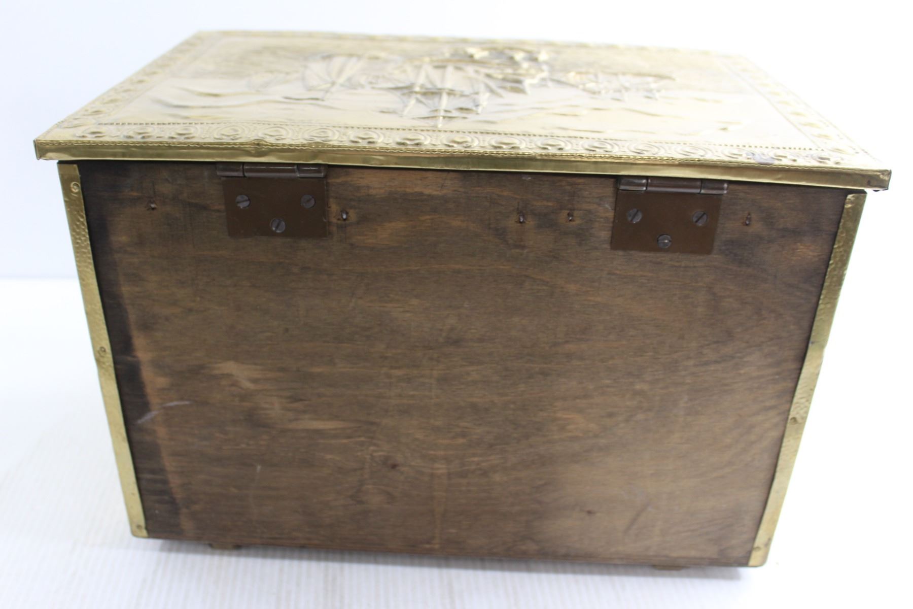 Embossed Copper Storage Chest - Wood is Cracked in Bottom