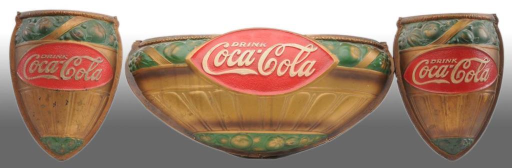 Description 1920s. Only very slight warping on the center sconce with medium overall wear and medium soiling. Small amount of repair to the back of one side-sconce but displays very well. Condition (7.0, Good). Size Largest: 23" x 12".