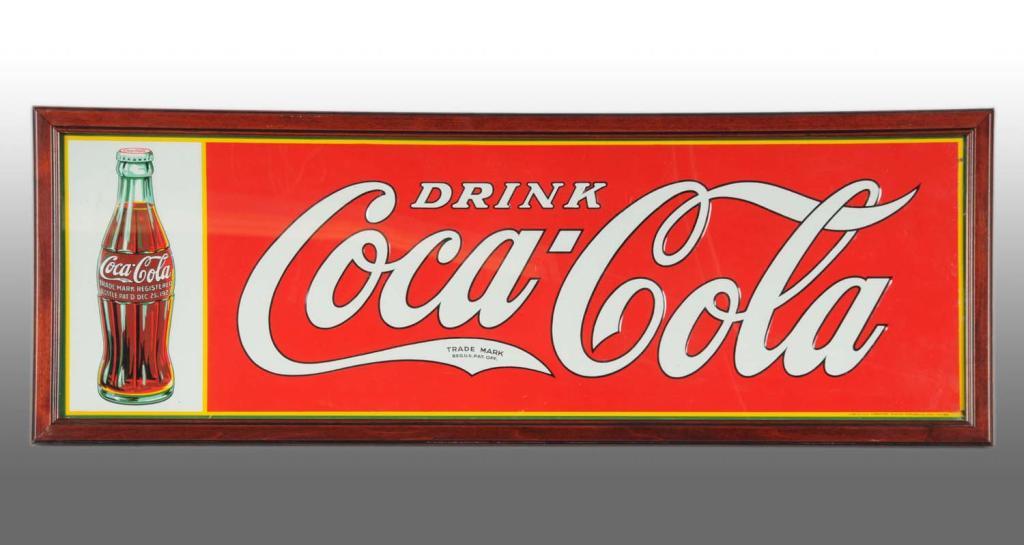 1936. Shows 1933 bottle on left. Nicely framed under glass with small edge chips, nicks, minor marks and light wear. Displays beautifully. Condition (8.4 - 8.7+, Excellent). Size 11" x 35".