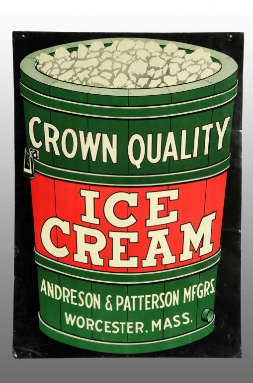 Description 1930s to 1940s. Very thin tin with a number of shallow crimps, dents, minor paint chips, and light wear. Good, strong color remains. Condition (7.5 - 8.0, Very Good - Excellent). Size 20" x 28".
