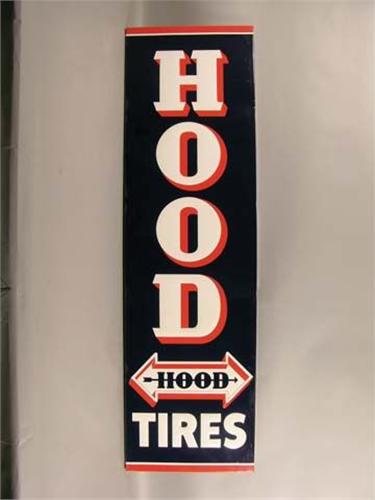 Embossed tin sign for Hood Tires, Akron, OH., 17.25" x 60" 3 color, Ex. cond.
