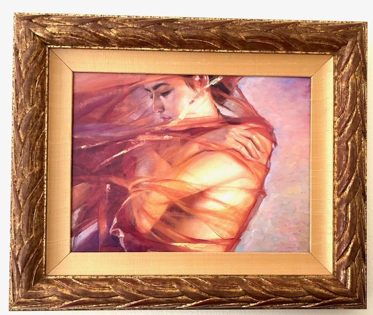 A stunning 12x16" giclee on canvas by Jia Lu, exquisitely framed with silk liner & gorgeous molding 19x22.5"