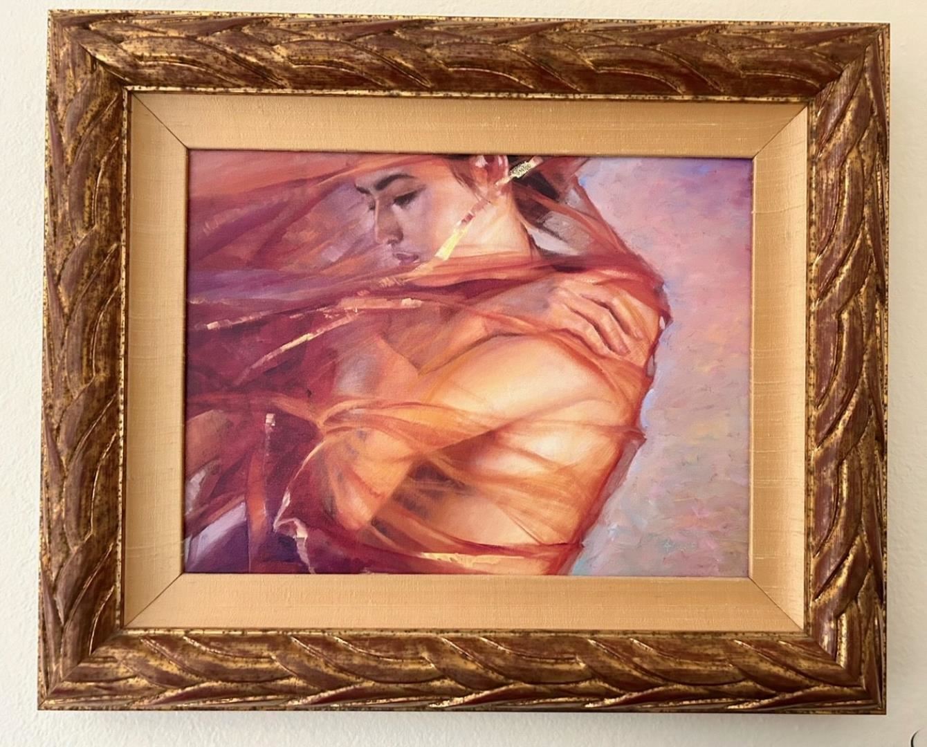 A stunning 12x16" giclee on canvas by Jia Lu, exquisitely framed with silk liner & gorgeous molding 19x22.5"