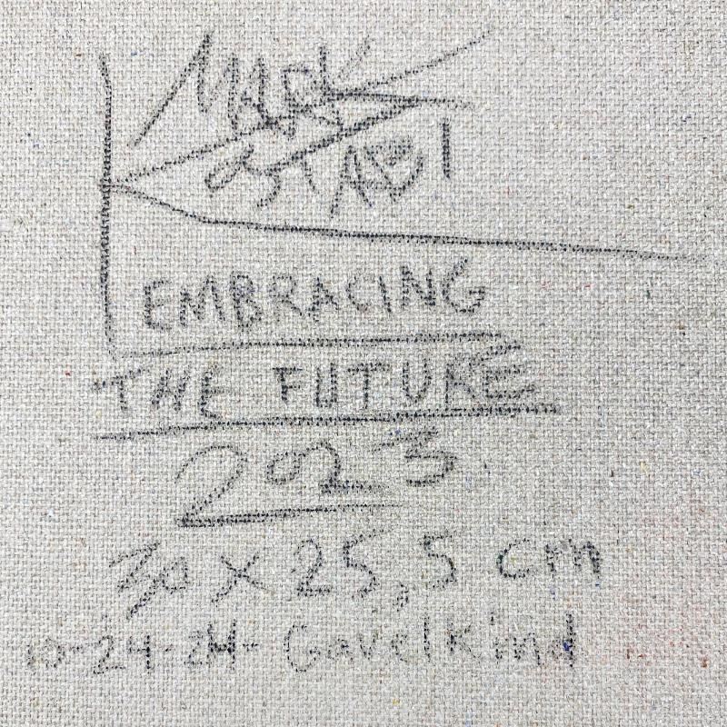 "Embracing the Future" is an original oil painting on canvas by Mark Kostabi, hand signed by the artist. This piece comes framed. Includes Certificate of Authenticity. Measures approx. 22" x 20" (frame), 12" x 10" (image).