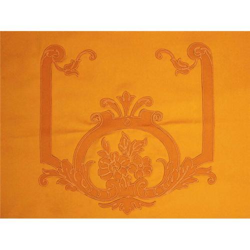 Set of four, unused vintage embroidered fabric meant for chair seat covers in orange wool fabric with a darker shade of orange fabric applied by means of an embroidered border. In good condition with minor flaws, has been in storage for many years and should be dry-cleaned to freshen up. Please ask questions, request additional photos, full condition report and shipping costs prior to bidding.