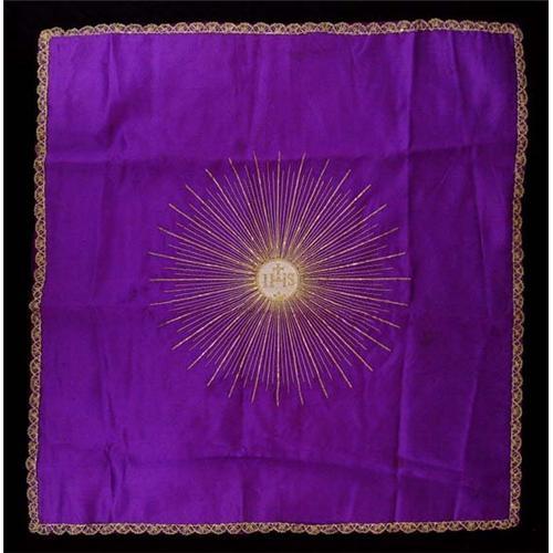 Purple silk Chalice veil with gold thread embroidery. Chalice veils, together with a burse, are the items for veiling the chalice previous to the consecration of the elements at the Eucharist. In good used condition with wear to back lining as shown. Please ask questions, request additional photos and shipping costs before buying.