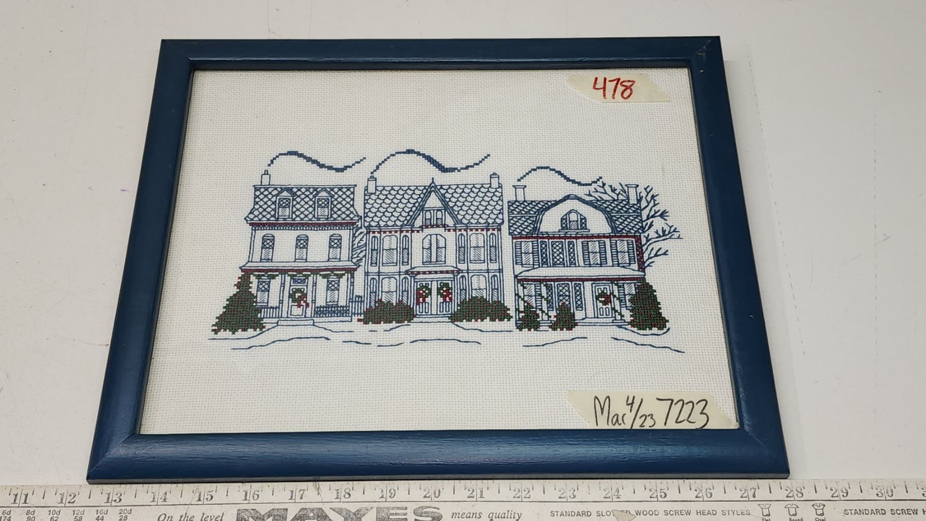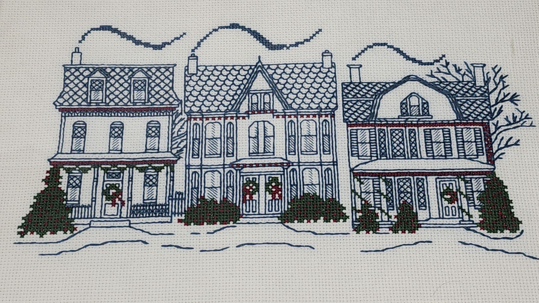 Embroidered painting of Housing - 15 1/2" x 12 1/2"H