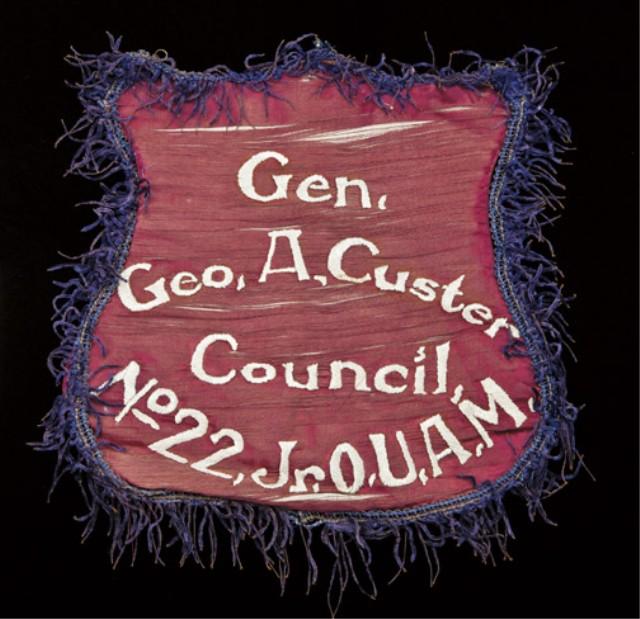 Embroidered silk banner, approx. 14” by 13”, shield shape, not including fringe. Red background with white letters and purple trim. Reads “Gen. Geo. A. Custer. Council. No. 22, Jr. O.U.A.M.” The order or banner is in fair condition showing distress and opening to the weave and aging, staining. Fair to good. The Order of United American Mechanics Jr. was an interesting political organization founded in about 1853 and peaked in membership about 1930’s. The organization was founded in Philadelphia and was original called the Union of Workers. Its agenda was specifically aimed at subverting immigrant prosperity in America. It was essentially anti-immigrant, anti-catholic. It had links to the No Nothing party and the KKK in the 1920’s. An interesting political artifact. Est: $500 - $1,000