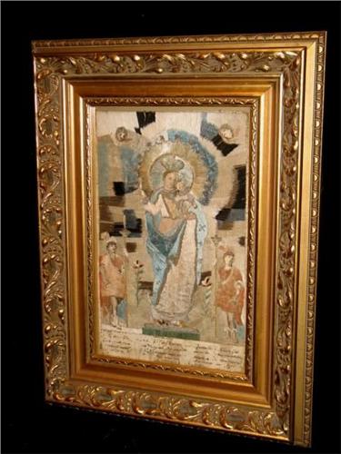 Embroidery, Icon, dated 1806, 7" x 11.5".